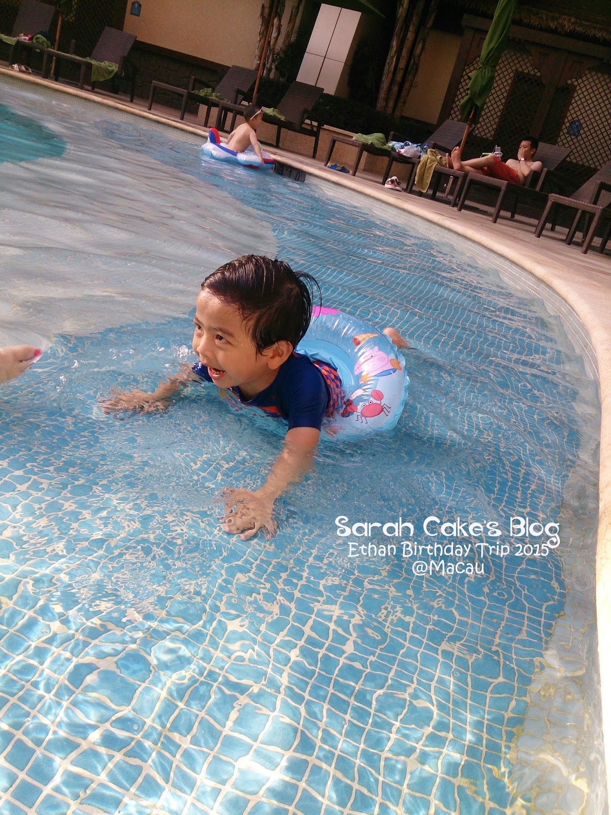 一睇就知陶寶B有如脫彊既野馬一樣向住泳池衝去,口莎拉已經HOLD唔住佢了. 酒店既泳池雖然不是大, 但就有好多個, 而設計上都好適合小朋友玩, 因為池邊氹氹圈係好寬既淺水區.