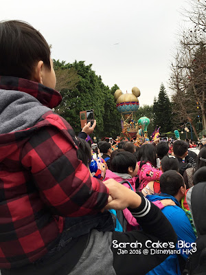 下午既巡遊就剛剛開始, 所有人都企晒係路邊兩旁睇表演了, 雖然人多, 但係小朋友騎膊馬就一定有最好既View啦.